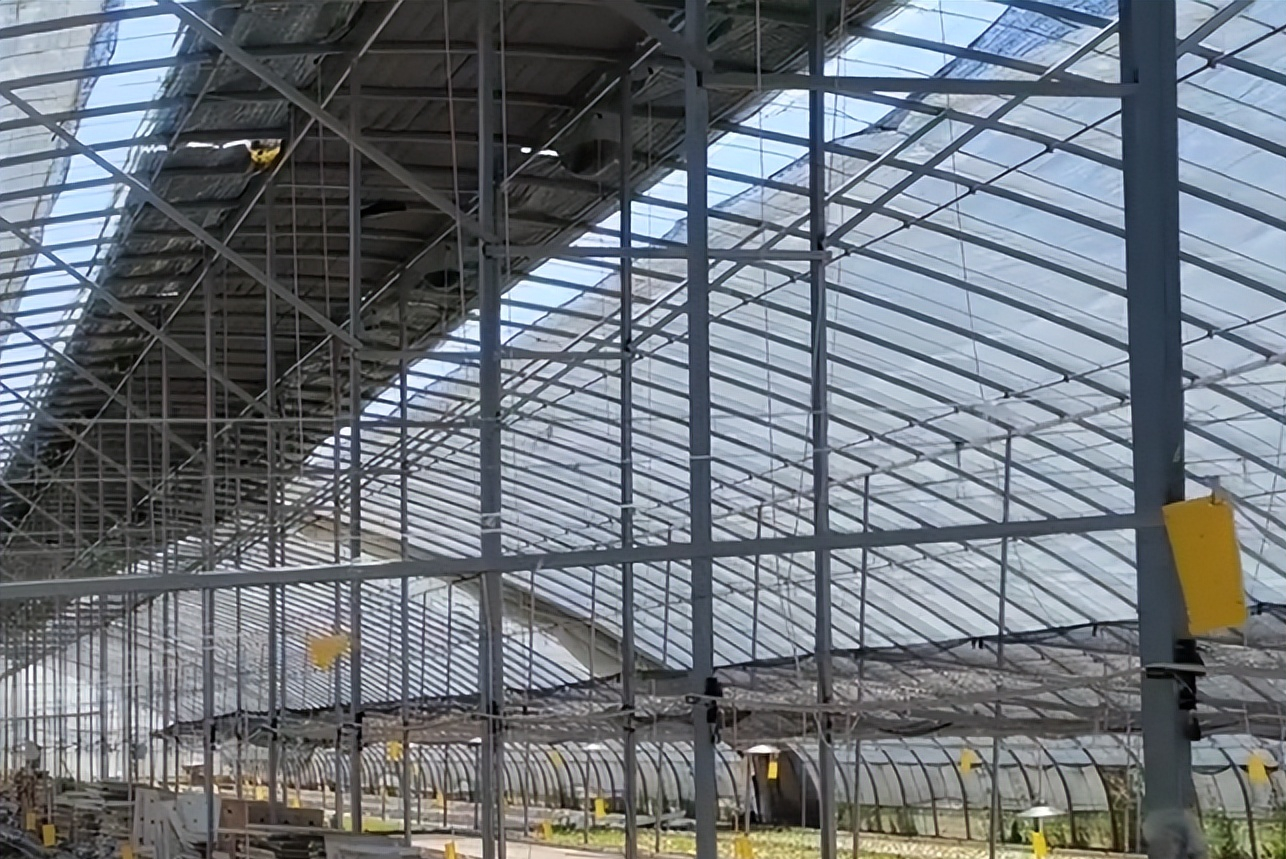 我们种植生菜,使用的三针,遮光率50%的遮阳网,全天进行覆盖,省人工,全天覆盖对生菜生长影响不大,而且降温的效果也比较好。降温剂的效果,和产品的质量有很大的关系,如果使用的降温剂质量差,喷涂之后,棚膜降温剂不能分解掉,到了十月份会影响光照,需要重新换棚膜。所以我们用遮阳网降温会安全一些,而且效果也不错,覆盖遮阳网后棚内的温度降低了,生菜也逐渐恢复生长。