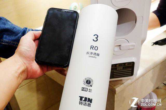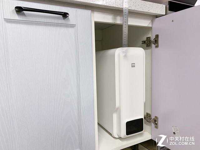 机箱式的设计不是偶然,而是为了赋予净水器很强的适应性,足以适应任何厨下空间,之前许多产品都是需要横向摆放的,然后再加上一个桶,没有给净水器预留厨下空间的消费者肯定就要抓狂。而机箱式的设计也让它可以贴橱柜放置,产品尺寸450×175×460mm高度大概约等于三个iPhoneX摞在一起的高度,这款净水器是无桶设计,更贴合目前的放置空间需求,为什么无桶?后面说到RO膜时我们会有解答。