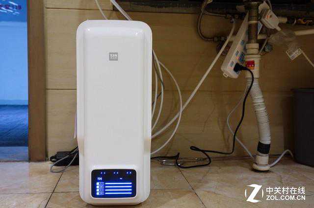 在开始测试之前我们是要对产品进行安装的,令我们没有想到的是安装过程只用了不到10min,产品的良好外观设计让它摆在台上也不会显得很突兀,反而还会显得很好看。在此我们又发现了不一样,从出水龙头上可以看到。