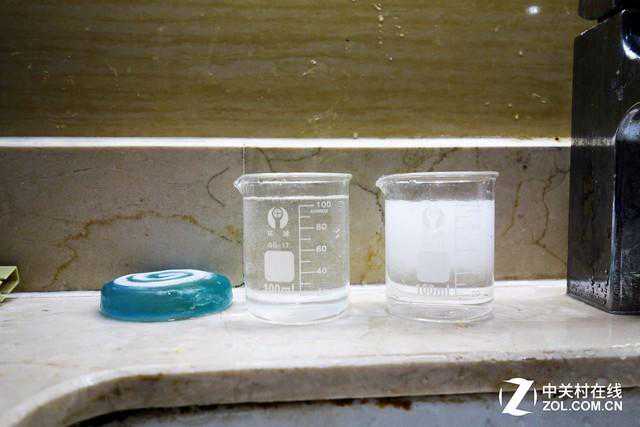 我们同时用烧杯接水,当纯水至刻度100ml时同时拿开水管,对于两个烧杯的水量。恩,与宣传的一样,当在纯水模式运行时特洁恩M30净水器的纯水/废水比达到了1比1。大概是一个什么水平?在2年前,RO机的普遍纯水废水比大概在1比3左右,也就是喝1杯水要产生3杯废水,经过2年技术迭代已经有不少产品可以实现1比2或者是1比1.5,而能完成1比1的还是少数,显然特洁恩M30净水器更环保出水效率更高,对水资源的浪费也较少。