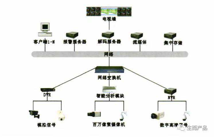 模拟监控阶段(1979—1983)早期的安防监控系统使用单位主要是一些非常重要的和特殊的单位和部门,系统由前端的模拟摄像机,后端的矩阵、磁带录像机和CRT电视墙构成。