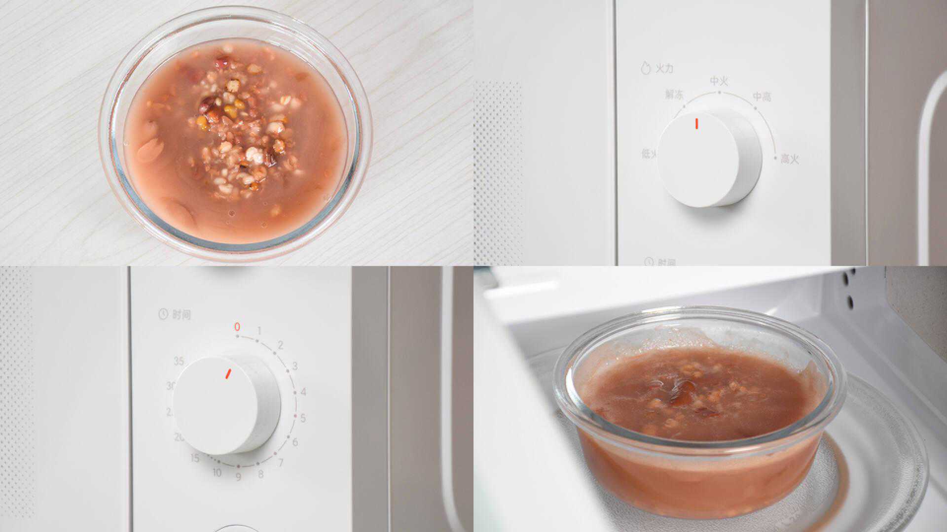 我平常主要用微波炉加热一些食物,做个简餐。比如早上习惯喝一罐八宝粥,把八宝粥倒在玻璃碗中,放进微波炉,调整到中火档位,3分钟,刷个牙的功夫就加热好了,倒计时结束后会有“叮”的提示音,对于懒人上班族来说简直就是早餐神器。
