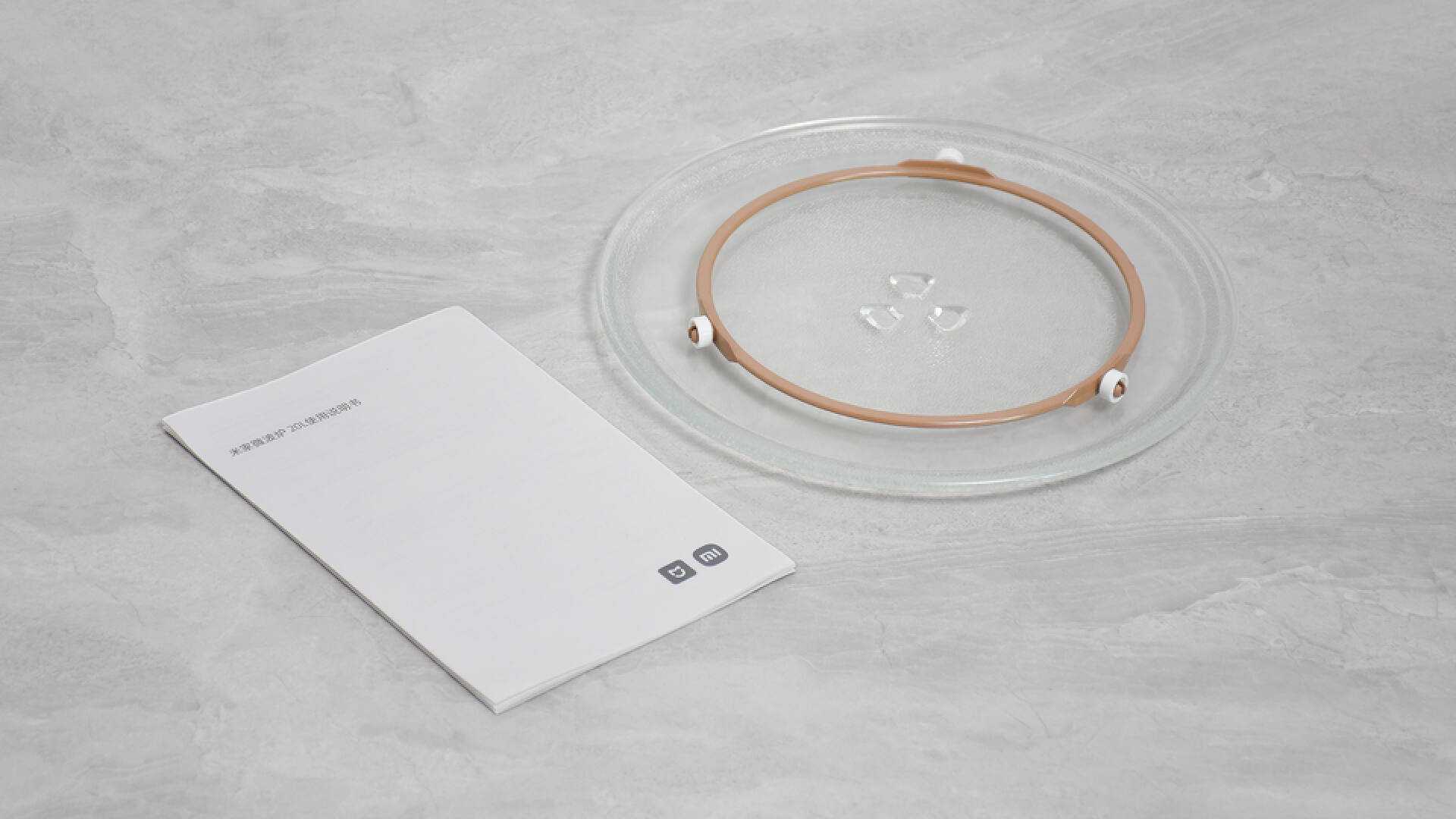 包装中除了微波炉之外,还附送有玻璃盘、转动胶轴和使用说明书。