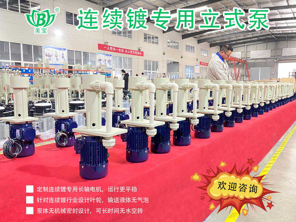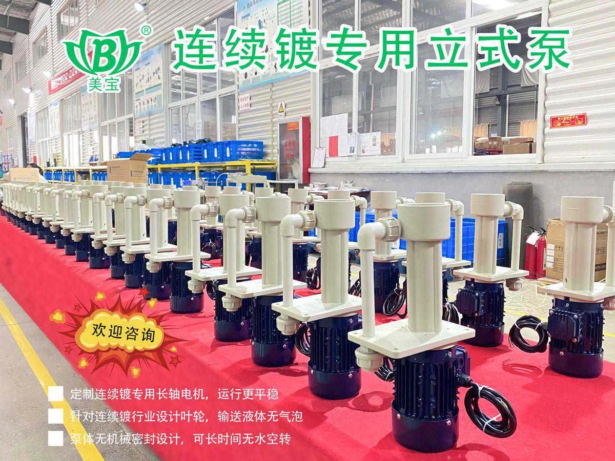 美宝连续镀专用立式泵一款专为连续镀行业,优化设计的耐腐蚀,可空转,无气泡,强度大,运行平稳,综合性能优越的立式泵,欢迎您的咨询!