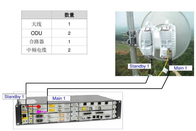 当存在两个ODU时(用于1+1HSB热备份,或者1+1FD频分),还会有一个合路器,用于功率分配或合成。