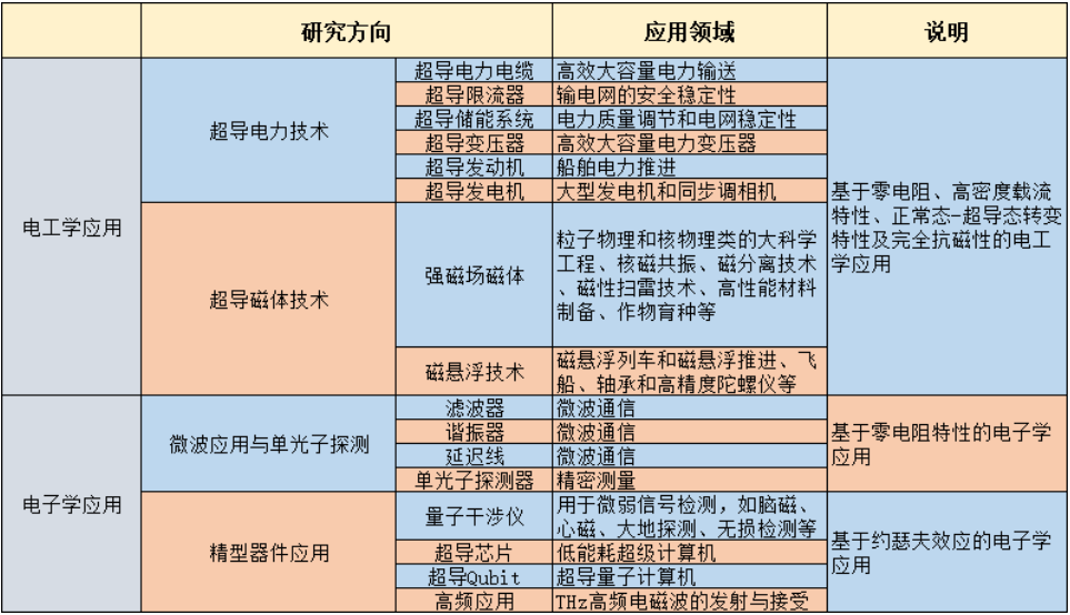 下面这张图表,较为客观地总结了高温超导的应用场景。
