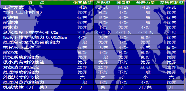 6、各种疏水阀主要技术特点对比