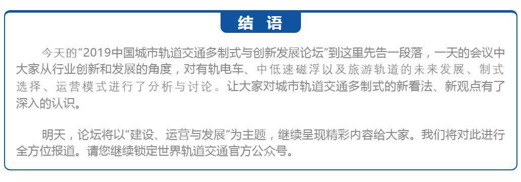 由世界轨道交通发展研究会主办的中国城市轨道交通多制式与创新发展论坛已经是第二届了,我们认为论坛积极的促进了行业关于多制式发展的思考和相关问题的研究,有效推动中国城市轨道交通多制式的进一步发展。希望论坛在大家的共同努力下每年都能按时召开,也希望老议题要有新内容,我们大家充分利用好研究会这个沟通交流的平台,共同为多制式的协调发展献计献策。