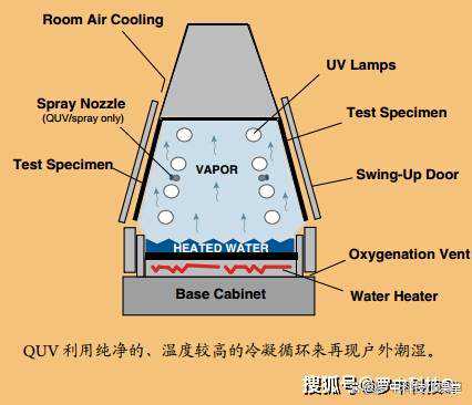 QUV/se紫外线加速老化箱通过独特的冷凝功能来模拟户外的潮湿侵蚀。在冷凝循环中,通过加热试验机底部水槽来产生水蒸汽。热的水蒸汽使试验箱在较高温度下保持100%的相对湿度。