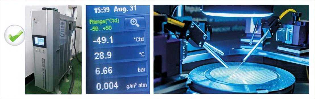 某半导体封装企业生产中应用了25万美元的进口低温探针台,该设备要求压缩空气露点必须小于等于-60℃,原使用的后处理设备为“冷干机+微热型双塔吸干机”,露点很难稳定,无法满足低温测试设备的用气品质要求,给生产造成极大困扰。