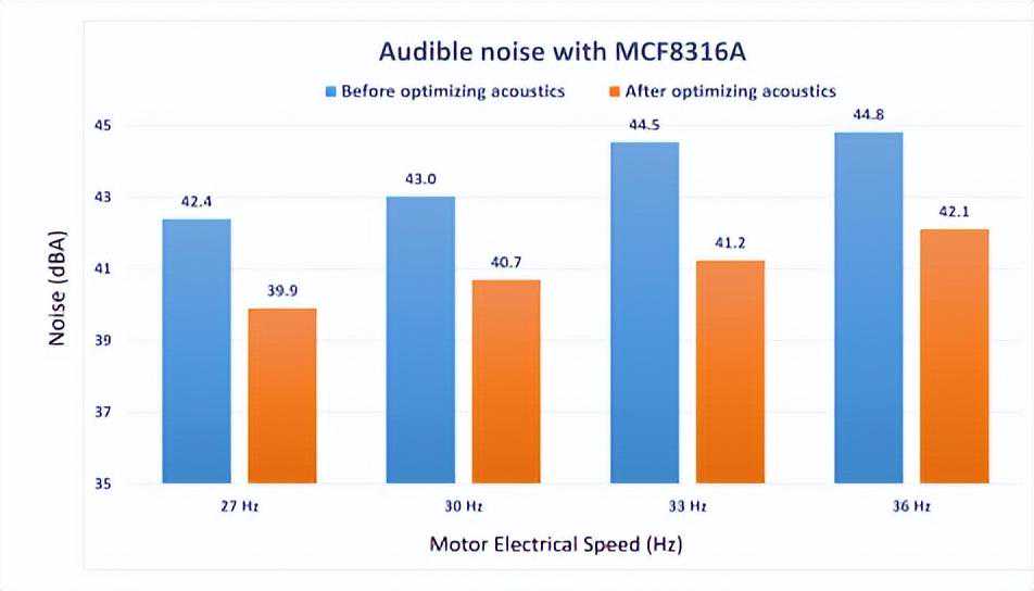 图2展示了利用MCF8316A优化声学性能前后的可闻噪声比较结果。