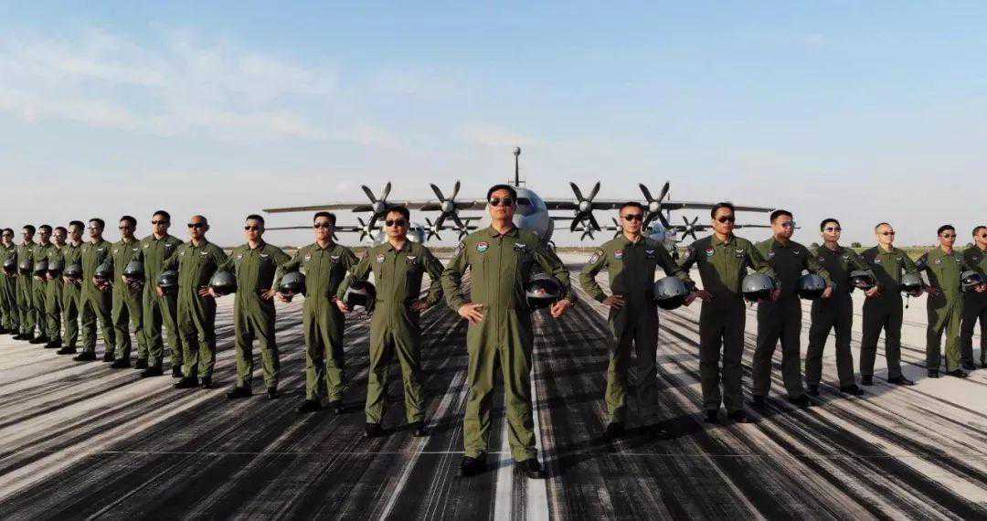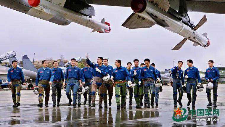 着新式飞行服,参加庆祝中华人民共和国成立70周年阅兵的空中支援保障梯队飞行员合影。
