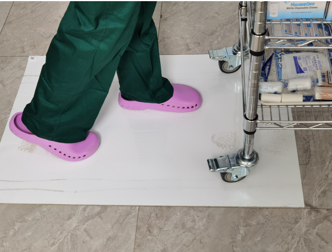 2.粘度:不同的粘度适用不同场合,手术室进出的人员一般穿拖鞋为主,粘度太高的粘尘垫容易粘住拖鞋造成磕绊风险,且手术推车也会经常出入,粘度过高易被掀起,所以建议选用的粘度在350±50g左右即可;