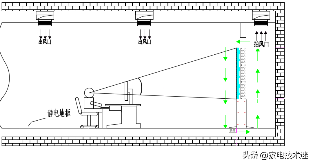 2、拼接屏前后应预留通风口或管道,保证大屏幕系统前后空气流通,维修通道要加抽风机不少于2个向室外抽风,保证大屏幕显示墙前后的空气循环对流,以避免大屏幕显示墙因湿度过大发生结露现象。