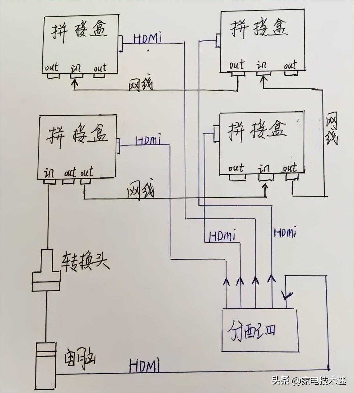 2、同时将高清线、电源线和拼接盒网线连接好,接插紧。