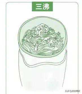 当煮水器内水面的气泡如鼓浪翻滚时,为三沸。当水温达到足够的高度,气泡内的水汽饱和了,气压增大,气泡在上升过程中体积不再变小,继续增大,浮力也变大,升到水面破裂,放出蒸气,水就沸腾了。