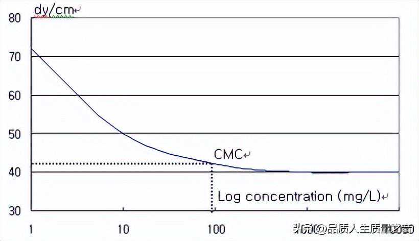 而電鍍液的潤濕性是可由液體的表面張力來做控制及分析,由表面張力的理論得知,若電鍍液的表面張力愈小,表示電鍍液的內聚力愈小、愈容易滲入細小的縫隙裡面、也愈容易於被鍍物表面潤濕讓金屬離子鍍上去。因此為了使電鍍液的表面張力降低或是增加電鍍後的品質,通常於電鍍液中會加入有機添加劑(光澤劑,結構改良劑,潤濕劑..等),其中潤濕劑即是在使鍍液表面張力降低的作用。然而當這類界面活性劑添加超過CMC點後,表面張力即不再改變(如下圖)。此時過量的添加不但沒達到效果反而增加了生產成本。因此CMC點便可作為電鍍液的監控標準值,來決定何時添加及添加的量。
