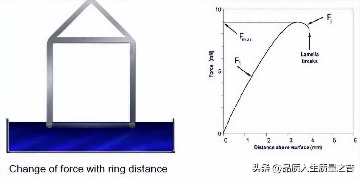 由于距离不同表现出的表面张力也不同,因此测量往往取最大值,也就是右方图中的Fmax