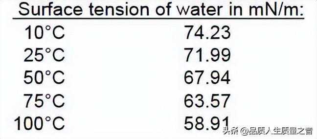 比如下面表格在10摄氏度时不同液体的表面张力差异很大