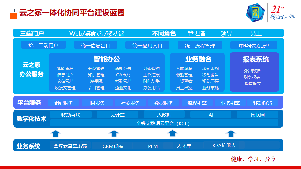 8月8日,云之家在金蝶30周年的创见者大会上成功举办金蝶云一体化协同平台专业论坛。西部(重庆)科学城、河钢集团、青岛国恩、贵州首杨、广州誉维等众多政企代表和云之家管理团队参加本次会议。