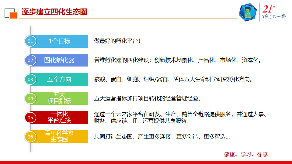 2022年是誉维紧跟2030健康中国的战略的一年,提出了为生命赋能,建最好的孵化平台的企业发展愿景,共创生命科学的生态圈。