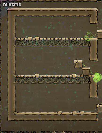传统水封门B,最少耗水量1000kg+。但是要翻4个台阶,上层的水珠会因为复制人呼吸来回移动,比较纠结的一种水门,理论上不会发生气体交换,上层水珠的左边和右边位置可能会被二氧化碳占据。
