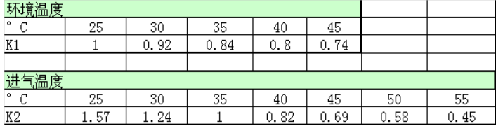 2.检查环境温度和进气温度,过高的运行工况肯定会引起露点变差,修正系数表如下。