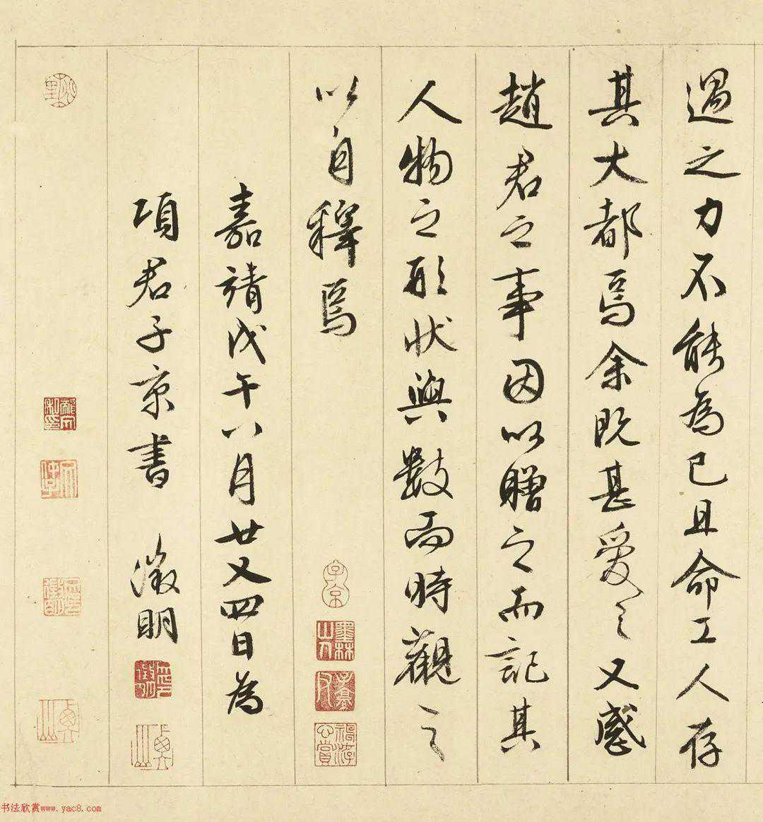 款署:嘉靖戊午(1558)八月廿又四日,为项君子京书。徵明