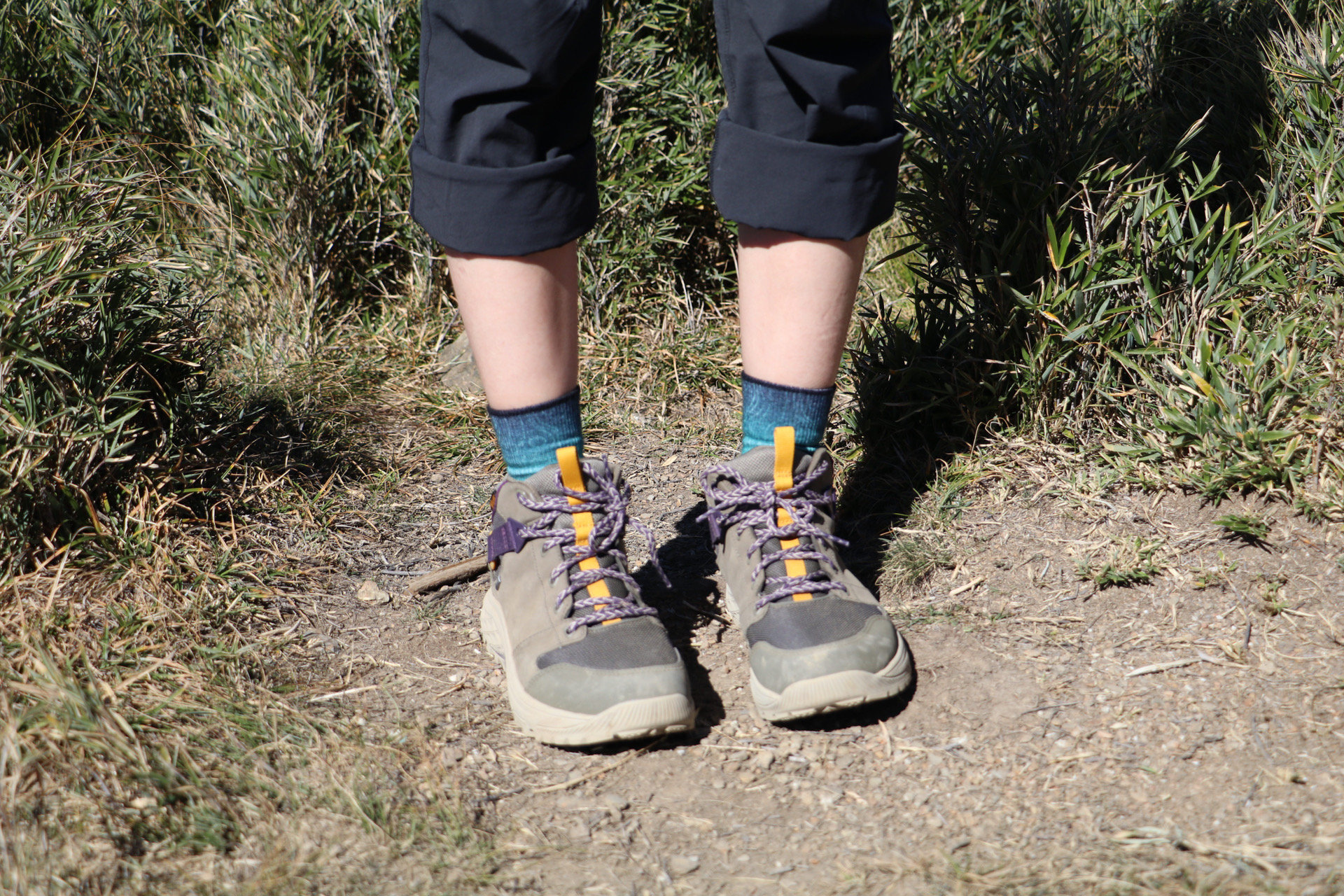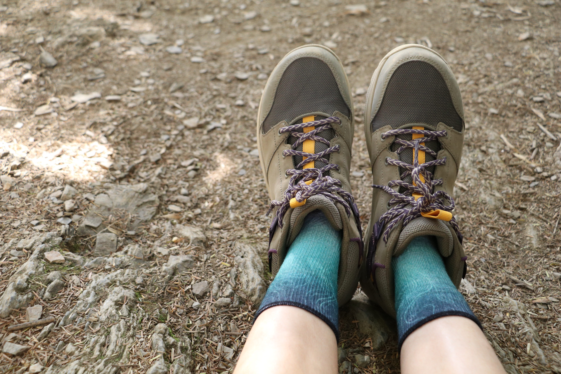 SmartwoolPhD中长袜配上中帮登山鞋,觉得露出来的袜子颜色跟登山鞋搭起来很好看。