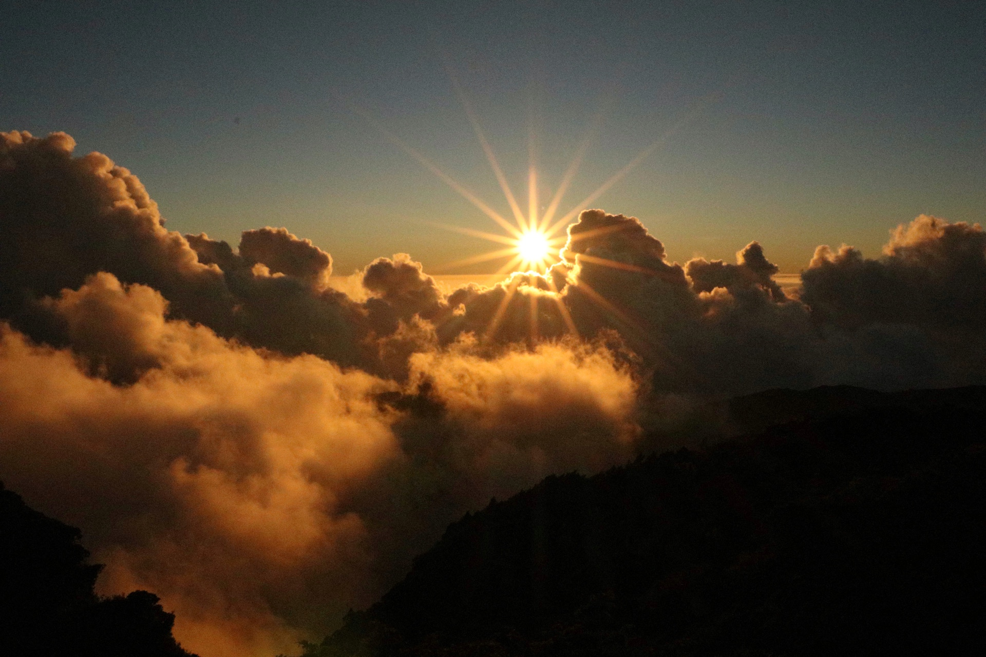在云海后方的太阳,准备要沉到海里面啦!太阳公公,明天见。