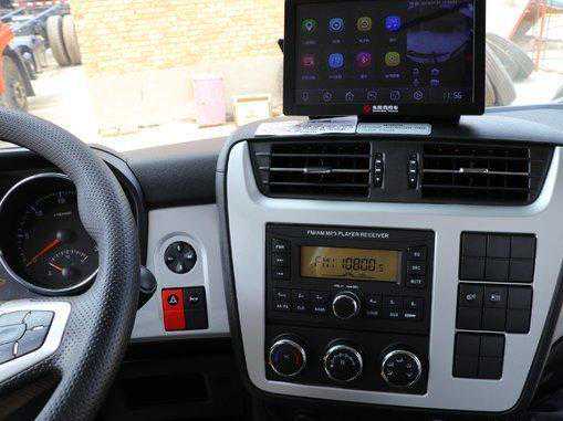 四幅式方向盘与解放重卡车型相似,并且密封的转向柱让它整体观感良好,仪表为机械指针式物联表+液晶屏的组合,可显示转速、油量、气压、水温、时速以及部分车辆状态信息,整体还是相当的丰富。
