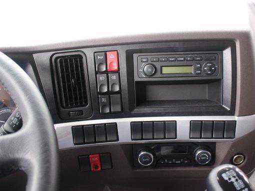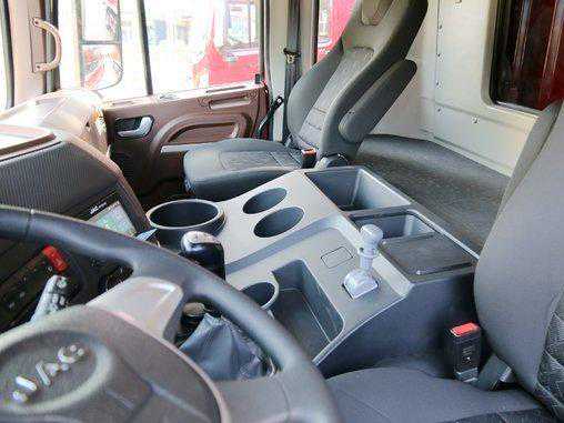 格尔发K5X的驾驶舱采用了环抱式设计,大部分功能镶嵌在中控台上,卡其色搭配银色饰板的配色显得也格外的精神。控制区域触手可及,大量常用按键排布规整,方便驾驶员熟悉后进行盲操,行车记录仪与空调调节旋钮位置距离驾驶员也较近,操作便利性上得到保证。储物区域排布在中央通道位置,较多的储物槽保证了良好的储物能力。
