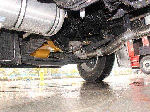 在动力方面,东风天锦KR搭载一台型号为ISD24550的东风康明斯发动机,6.7L排量,最大功率245马力,最大扭矩950,满足国五排放标准。与之匹配的是一台法士特8JS85E8档变速箱,头档速比10.36,最高档速比0.8。前桥允许载荷为6500kg,后桥允许载荷达到11500kg,速比为4.33,底盘为前8后10+8钢板弹簧悬架结构,承载能力相对其他车型来说更加强劲,动力配置适合在山区等起伏路面行驶。