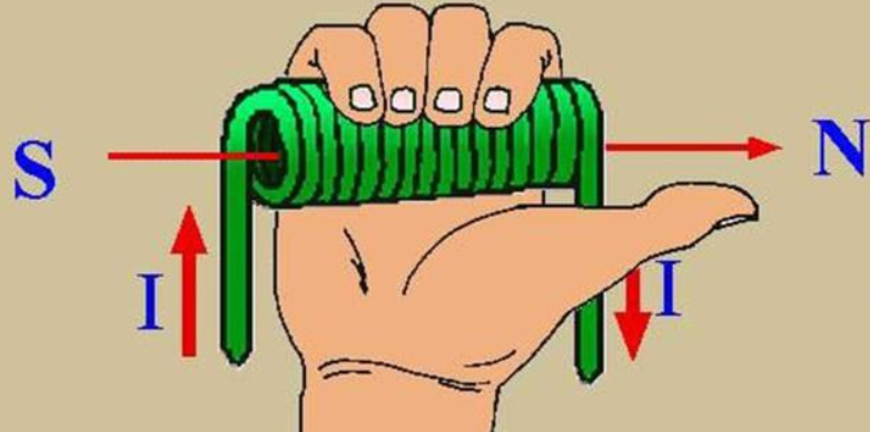 通电线圈会产生磁场,这就是法拉第电磁感应定律。利用右手螺旋法则,四指弯曲指向电流的方向,大拇指所指的方向就是N极,另一端就是S极。