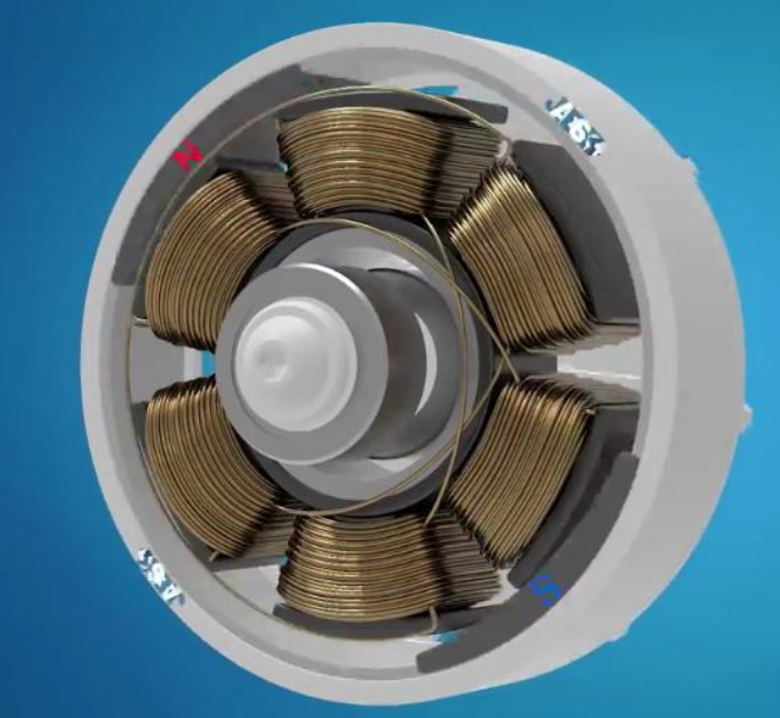 再加上由永磁体即磁铁做成的转子,就形成了一个基本的无刷电机。