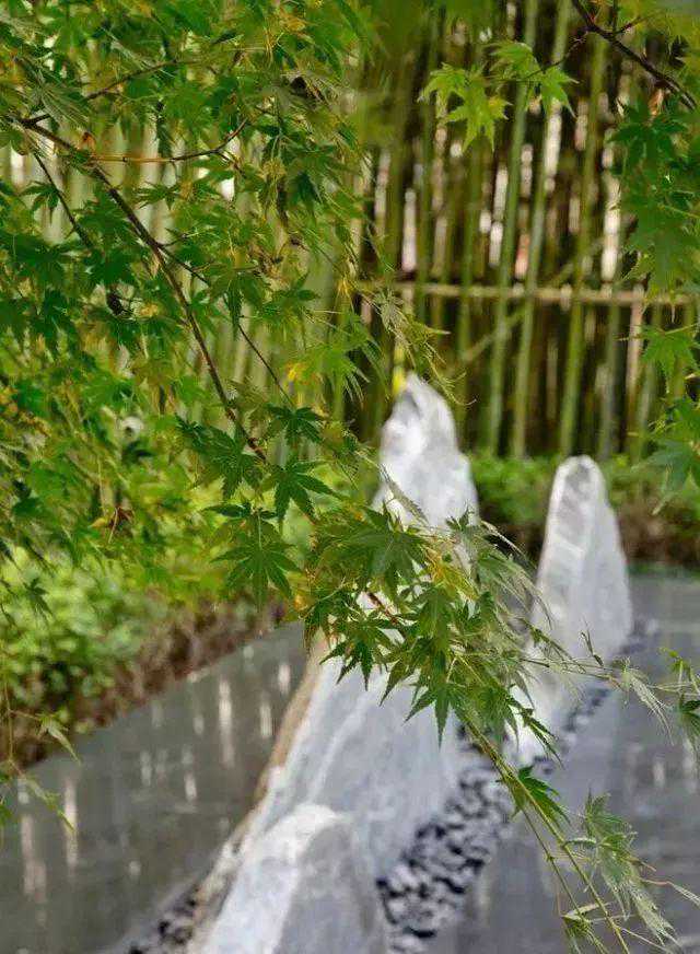 置石区域要将石头向外围渗透,体现疏密关系。适当围出小的种植池,可以让植物渗透进来,让植物的叶子从石头上垂下软化空间。