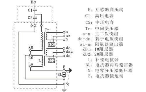 我们以DCJS-S抗干扰介损测试仪测量TYD35/-0.02H电容式电压互感器为例,其内部接线图如下: