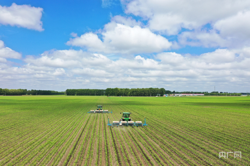 黑龙江省富锦市七星农场玉米追肥及中耕管理作业现场。(央广网发党爱河摄)