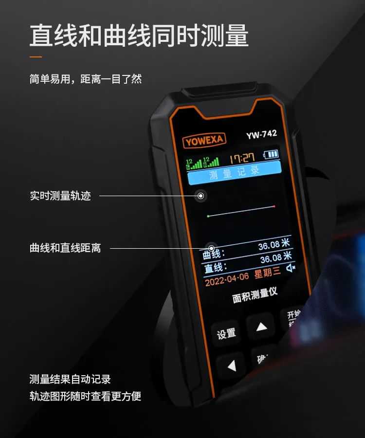 YW-742系列测亩仪,采用可调节的高清彩色大屏,显示直观清晰。带照明LED灯,黑暗环境同样适用。