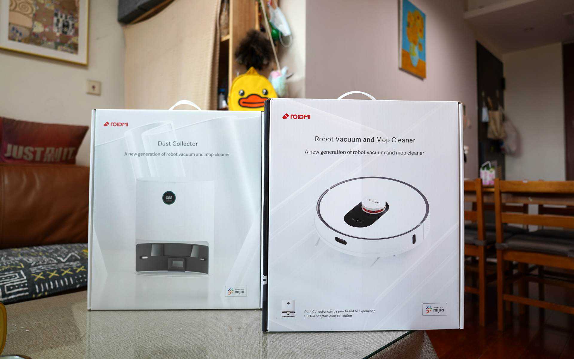 ▲睿米扫拖机器人EVEPlus的包装采用的充电集尘底座和扫地机分离包装。机器人EVEPlus支持米家APP接入同时也支持睿米的APP接入。