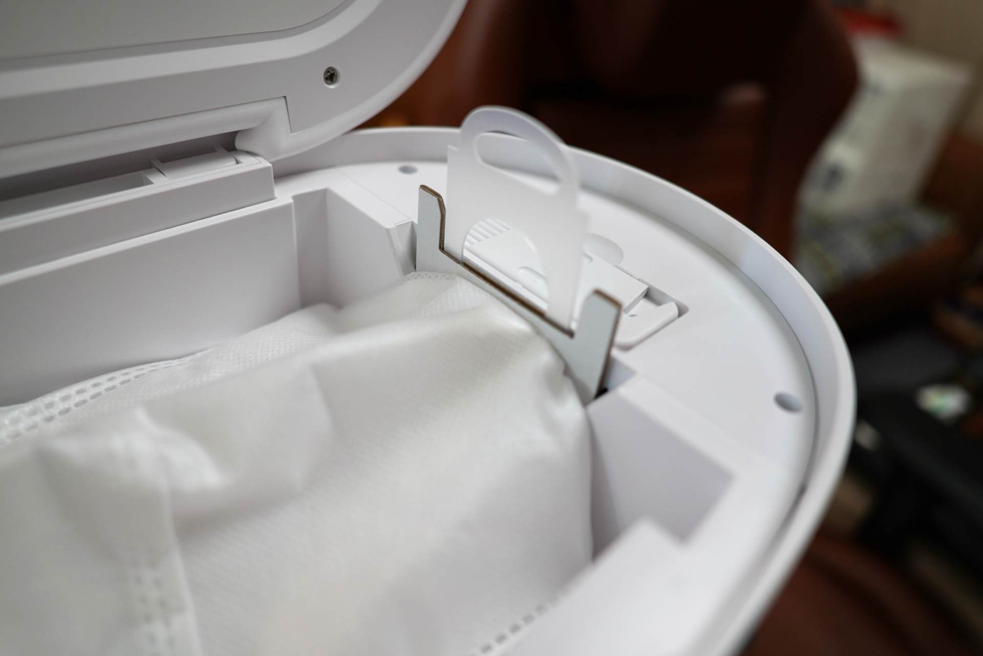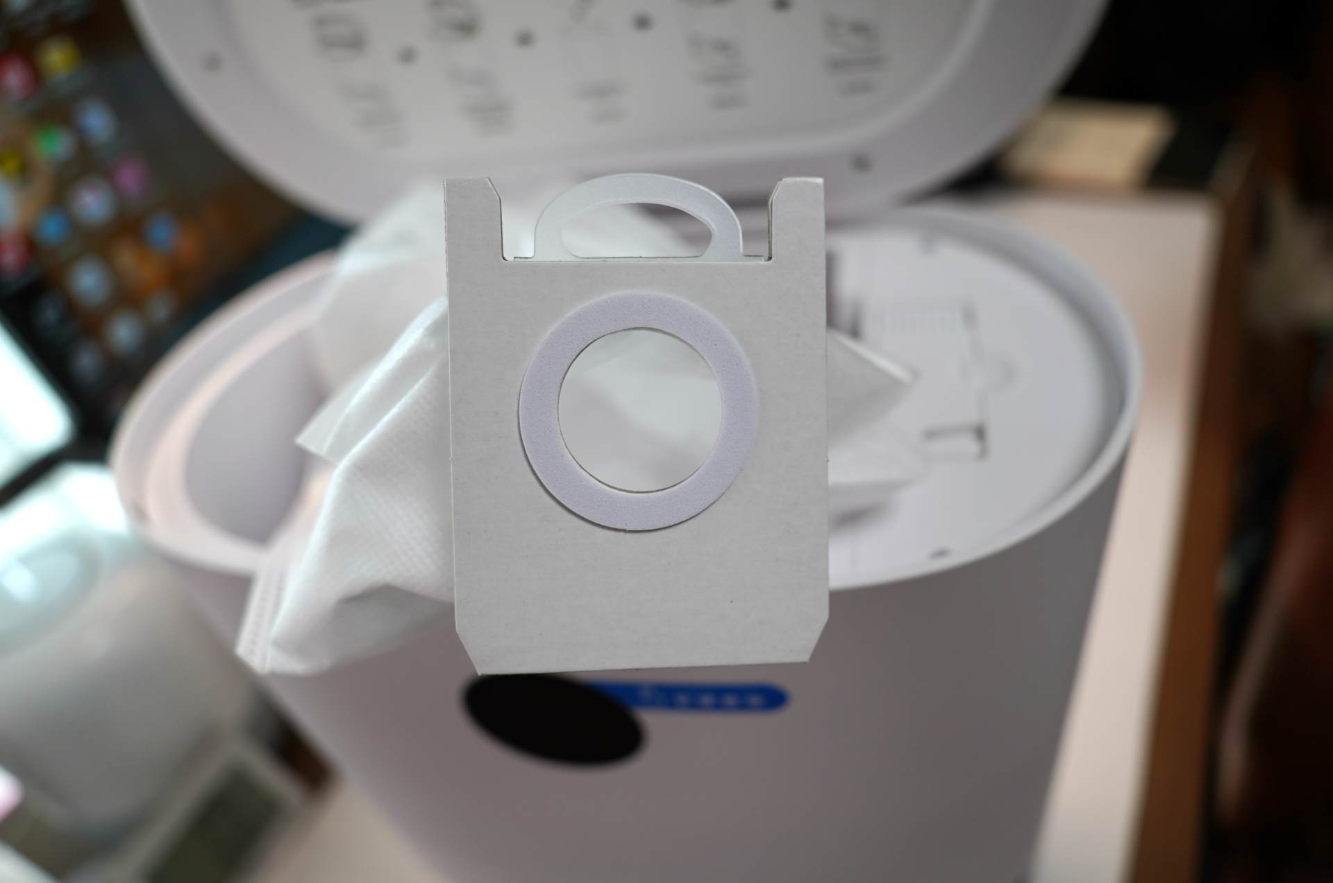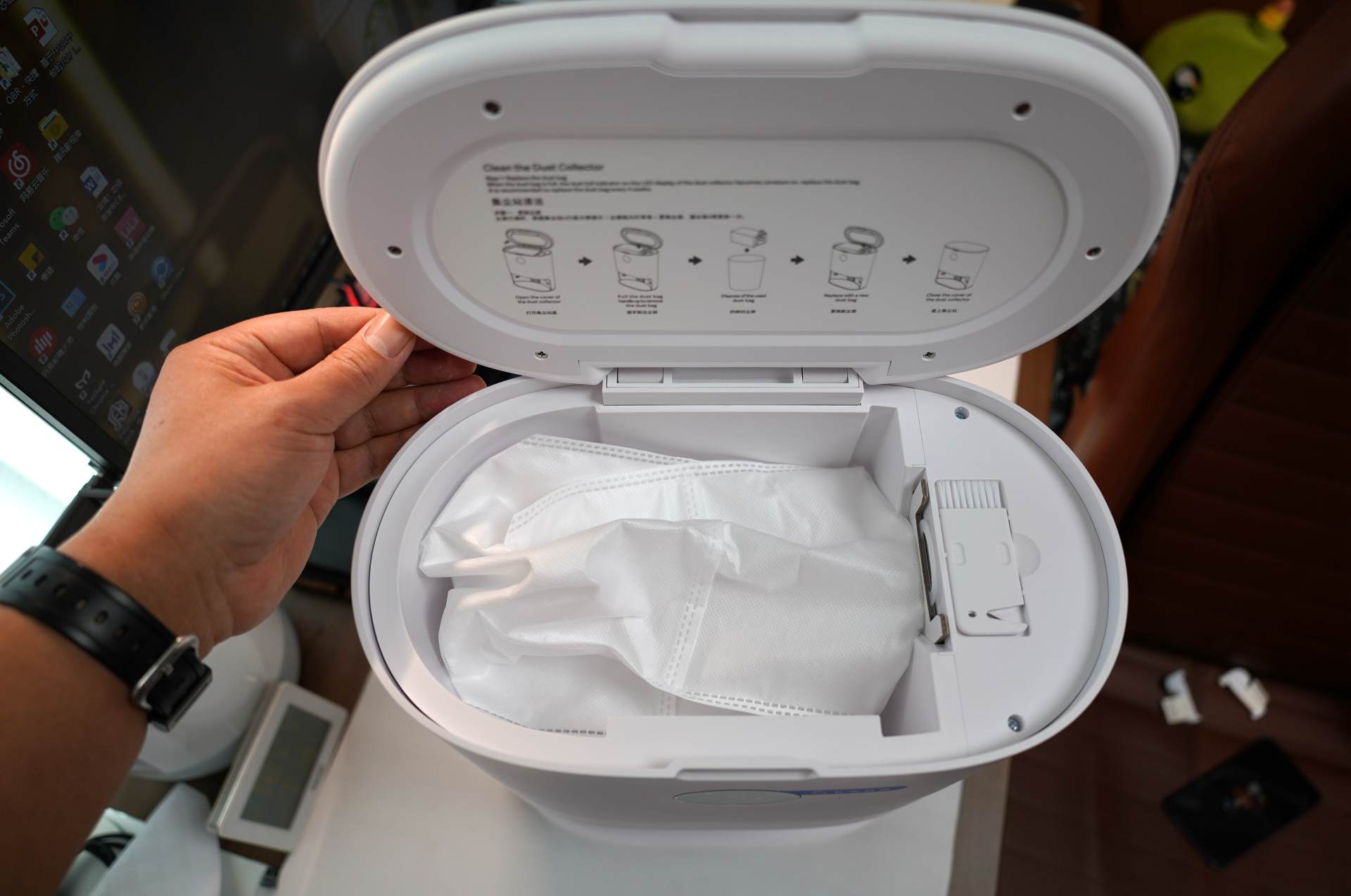 ▲集尘站内部的尘袋为3L,是睿米扫拖机器人EVEPlus内置尘盒的10倍,扫拖机器人的尘盒比较小,工作后回收一次的尘量最多为300ML,所以一个集尘袋可以积攒十次工作量的垃圾。由于每次不可能都是慢慢的300ML,所以基本一个3L的尘袋可以一个月替换一个。用完即丢,不脏手无污染。