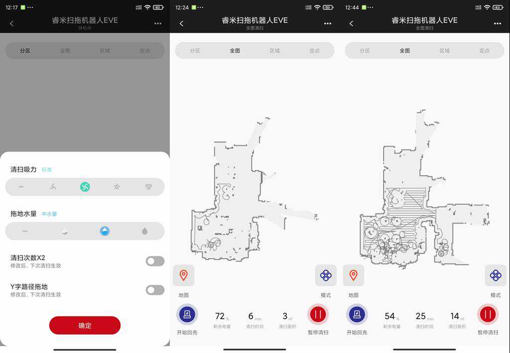 ▲通过内部的设置可以对于清扫路径,清扫次数,拖地的水量,清扫的吸力做一些自己习惯的设置。第一次构图中的圈圈都是椅子腿还有一些障碍物。