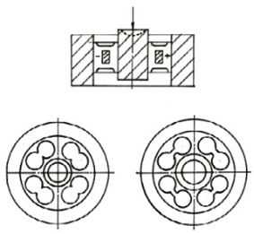 轮辐式称重传感器的弹性元件是一种孔结构的弹性元件。它的整个结构看起来像一个轮子,轮毂和轮胎之间形成了多个相互对称分布的辐条。外部载荷施加在轮毂的上端面上。轮毂、辐条和轮胎共同构成多个剪力梁,两侧有固定支撑。孔结构弹性元件如下所示。
