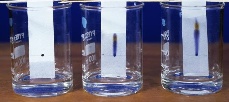 纸色谱的原理类似于薄层色谱,是一种吸附--解吸附--再吸附--解吸附的过程,从而达到各成分的互相分离。