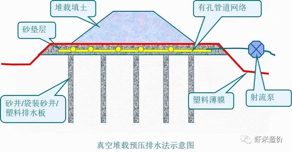 真空预压法适用于对软土性质很差、土源紧缺、工期紧的软土地基进行处理。