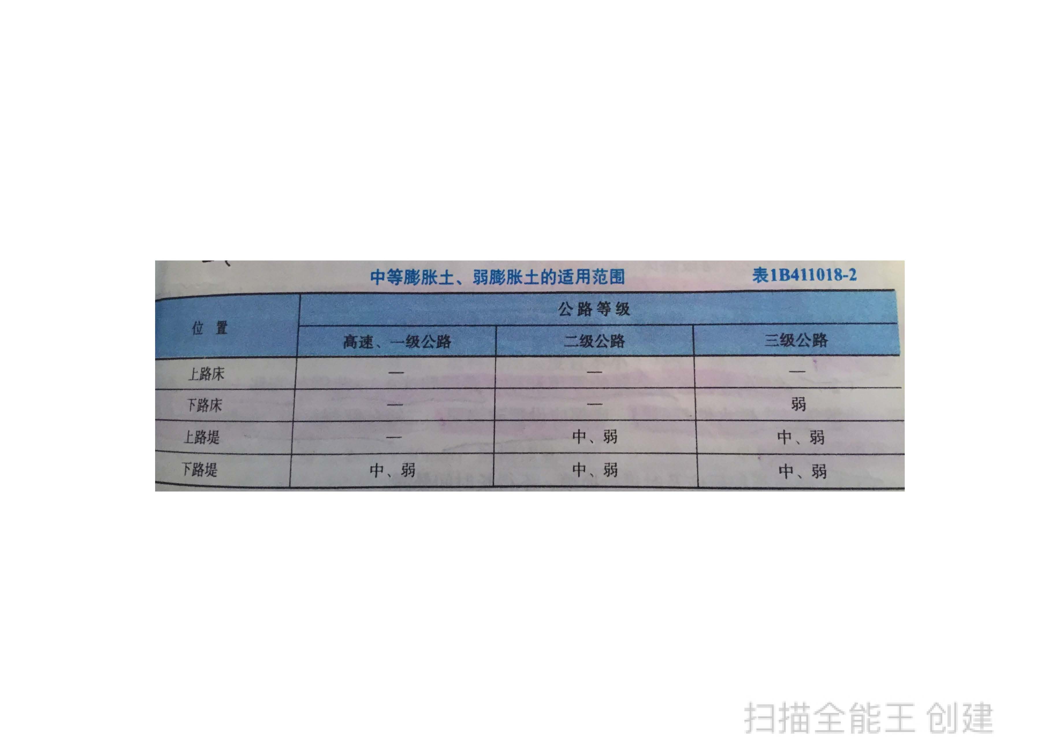 中等膨胀土、弱膨胀土的适用范围表1B411018-2