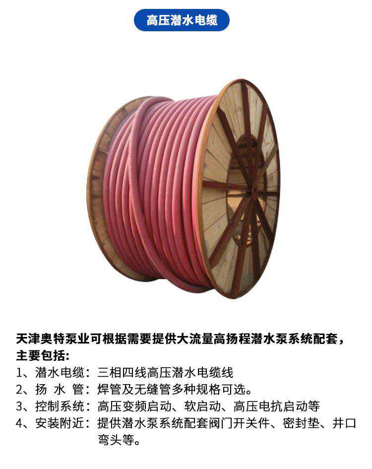 耐100度高温热水多级深井潜水泵配套电缆: