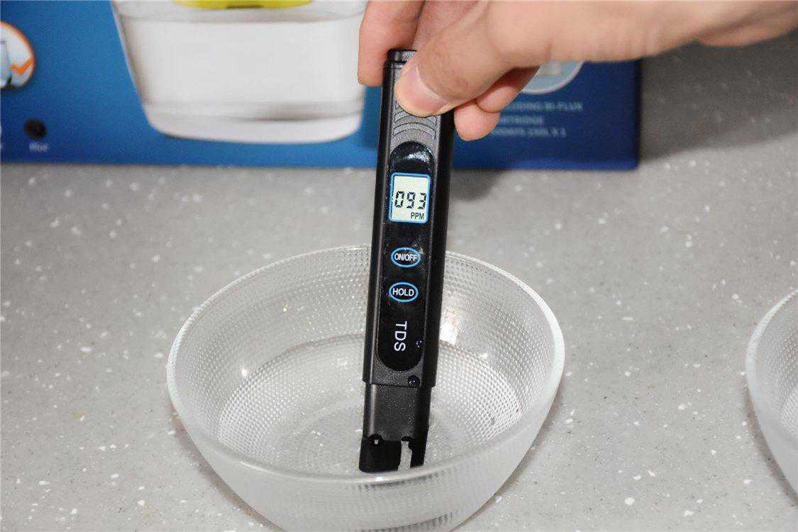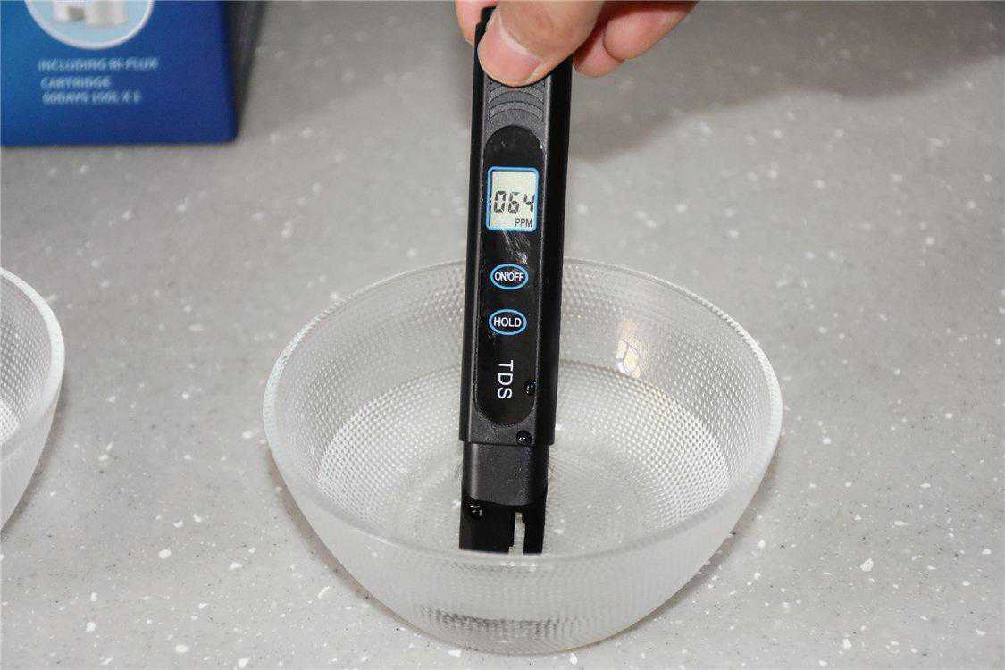总体上来看,过滤网的结构非常合理和丰富,最大限度地将水中杂质阻拦了下来。那么我们这里要知道,水中杂质大多是一些可溶解物,而且靠肉眼是看不到的,这里用到的工具就是TDS检测笔。