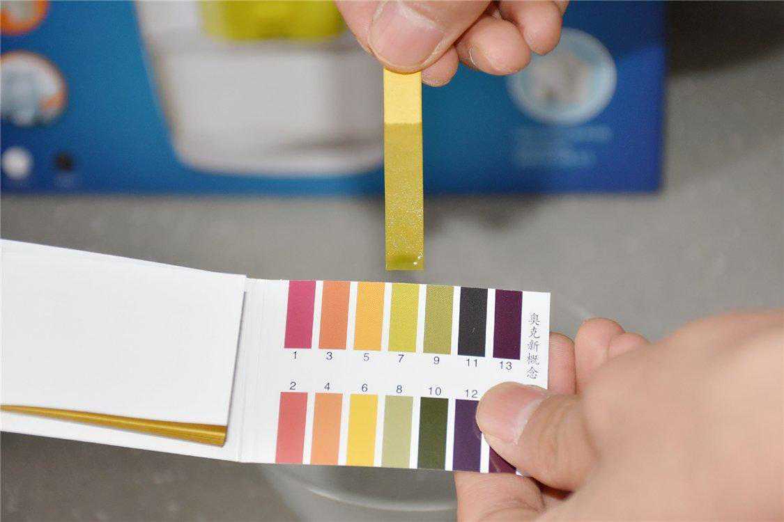 我们使用PH试纸对水中PH值进行了测试,第二张图是过滤前的自来水PH值,基本上属于中性,而第一张图片的PH值要比第二章颜色更深一些,偏弱碱性,非常适宜人体长期饮用。