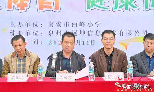 英都中心小学校长洪振添、西峰村党支部书记洪贵忠、英都中心小学副校长洪良伟、西峰小学教育基金会筹备组秘书长洪坤贤、英都中心小学工会主席陈文选、西峰村老人协会会长洪清鹏、泉州市远坤信息技术有限公司董事长洪东阳、英都中心小学总务主任欧阳加从以及西峰小学全体师生参加了本次体育活动开幕式。